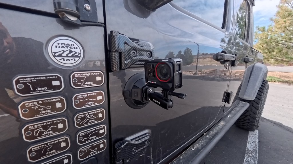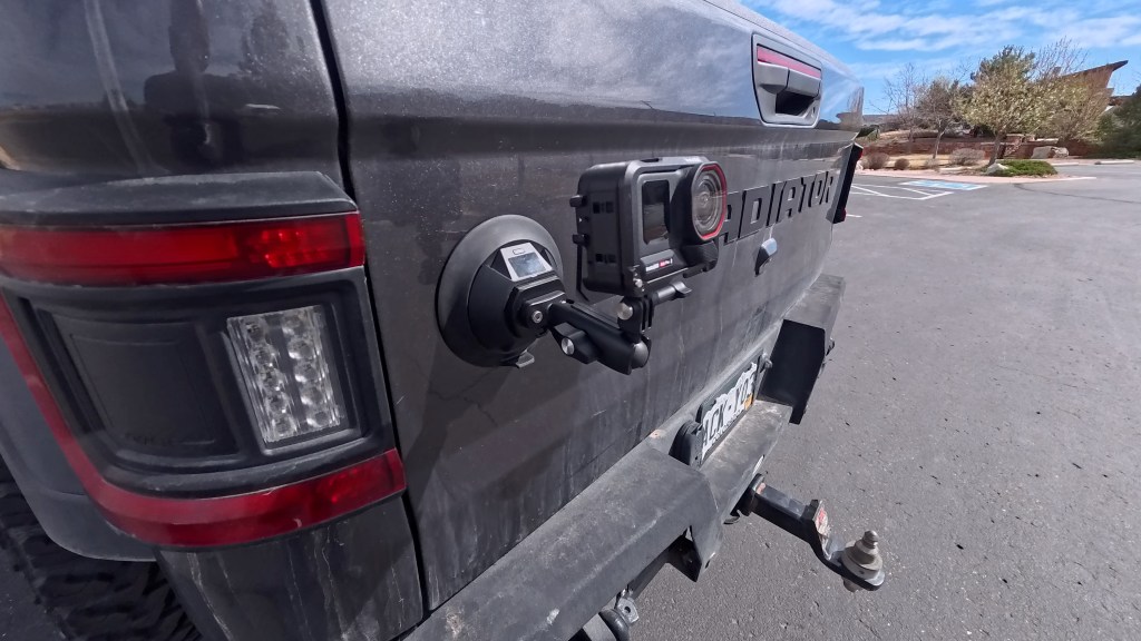 For exterior car content, I use an electric suction cup mount. Compared to standard suction, it is dramatically more secure at speed.